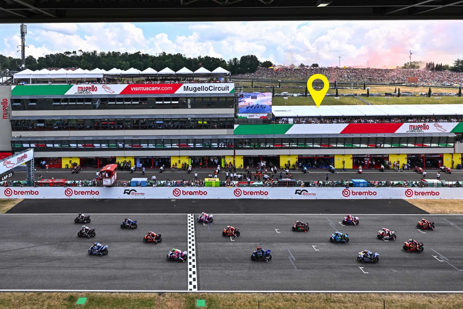 Location per spot pubblicitari e shots fotografici, è uno spazio che puo’ anche essere coperto, personalizzato ed arredato di tutto punto per la creazione di eventi: è questo e molto altro la lunga terrazza che sovrasta i box davanti alla linea del traguardo e che offre un vasto sguardo d’insieme su tutto il circuito.